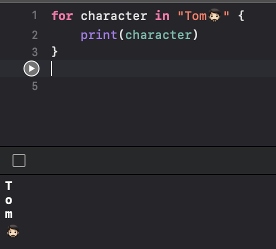 ⌘You can access the individual Character values for a String by iterating over the string with a for-in loop