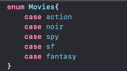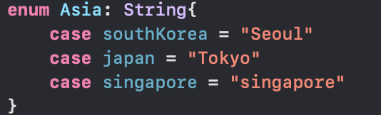 -> 열거형 안에 정의된 값들은 열거형의 case들이다. 새로운 case를 만들 때 case키워드를 사용한다.
