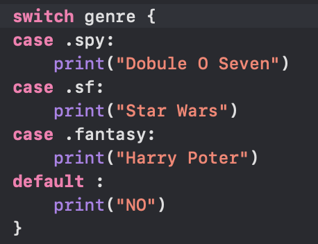 그래도 만약 모든 열거형 케이스를 제공하지 않는다면, default를 사용함으로써 사용되지 않는 열거형 케이스들을 커버할 수 있다.