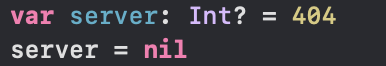 -옵셔널이 아닌 변수나 상수에 nil을 할당하게 해줌. 이 때 해당 변수나 상수는 옵셔널임.