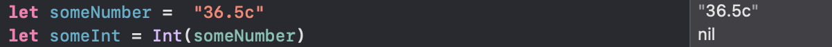 -> 형변환의 타입은 옵셔널로 반환됨. "36.5c"를 Int로 형변환 하였다 하더라도, 이것은 불가능하기 때문에 값이 없음.