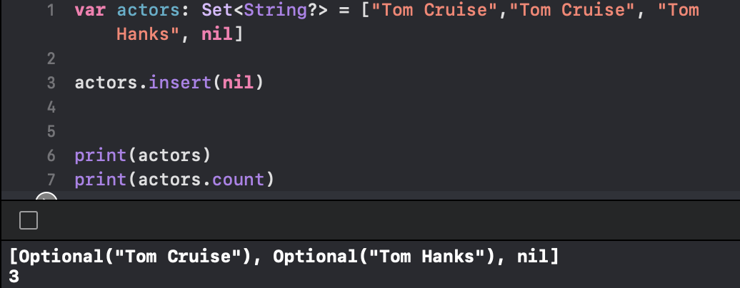 -배열을 선언할 때 원소들의 타입 옆에 ?물음표를 붙여주면, 해당 타입의 옵셔널로 이루어진 어레이와 집합을 만들 수 있다.