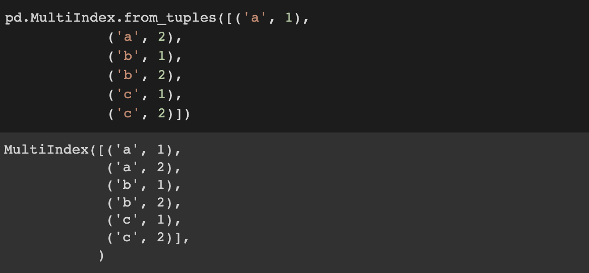 -튜플로 멀티인덱스를 만든다. 이 때 튜플들을 []로 감싸야 한다.